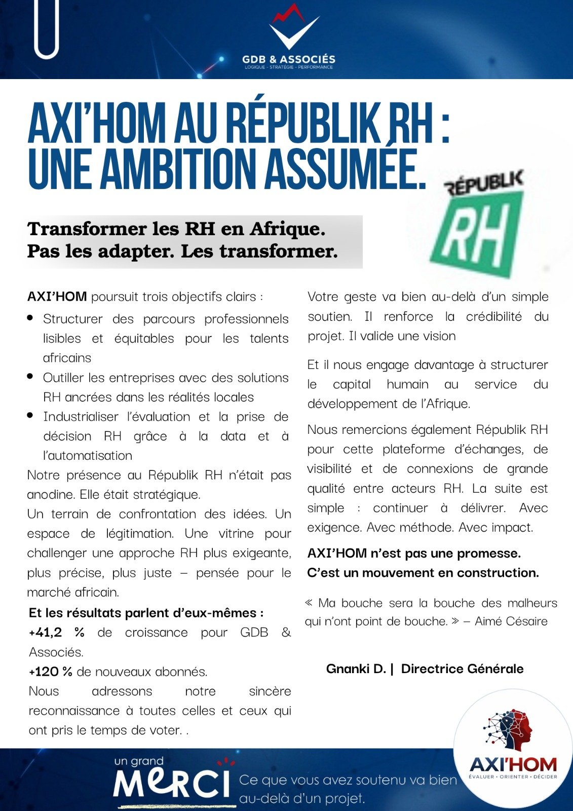 Notre présence au Republik RH a marqué une étape décisive. Le signal est clair : +55 réactions, +100 abonnés. Ce plébiscite valide notre vision : le marché exige une approche plus précise, plus juste et plus performante.